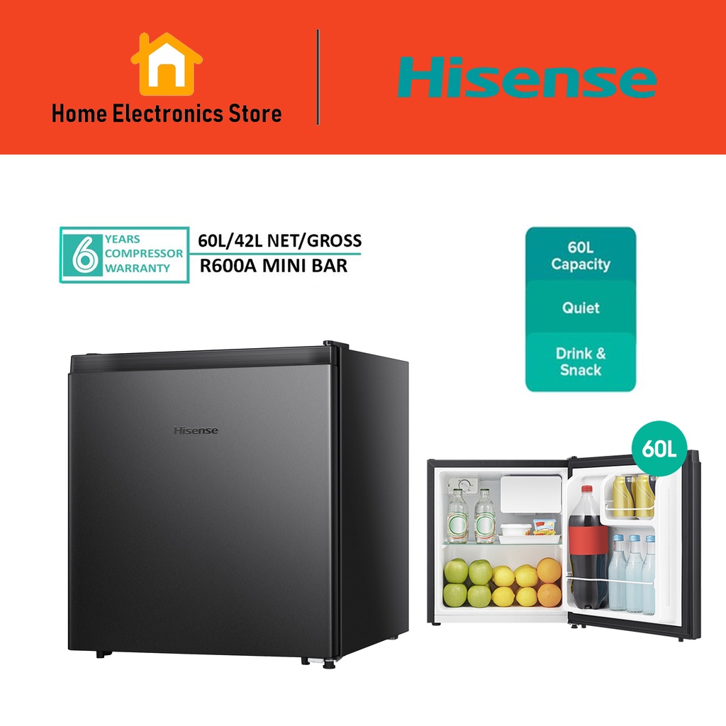 Hisense Rr60d4abn Black 60l Single Door Fridge Refrigerator Peti Sejuk Mini Bar Replace Rr60d4agn Silver Shopee Malaysia
